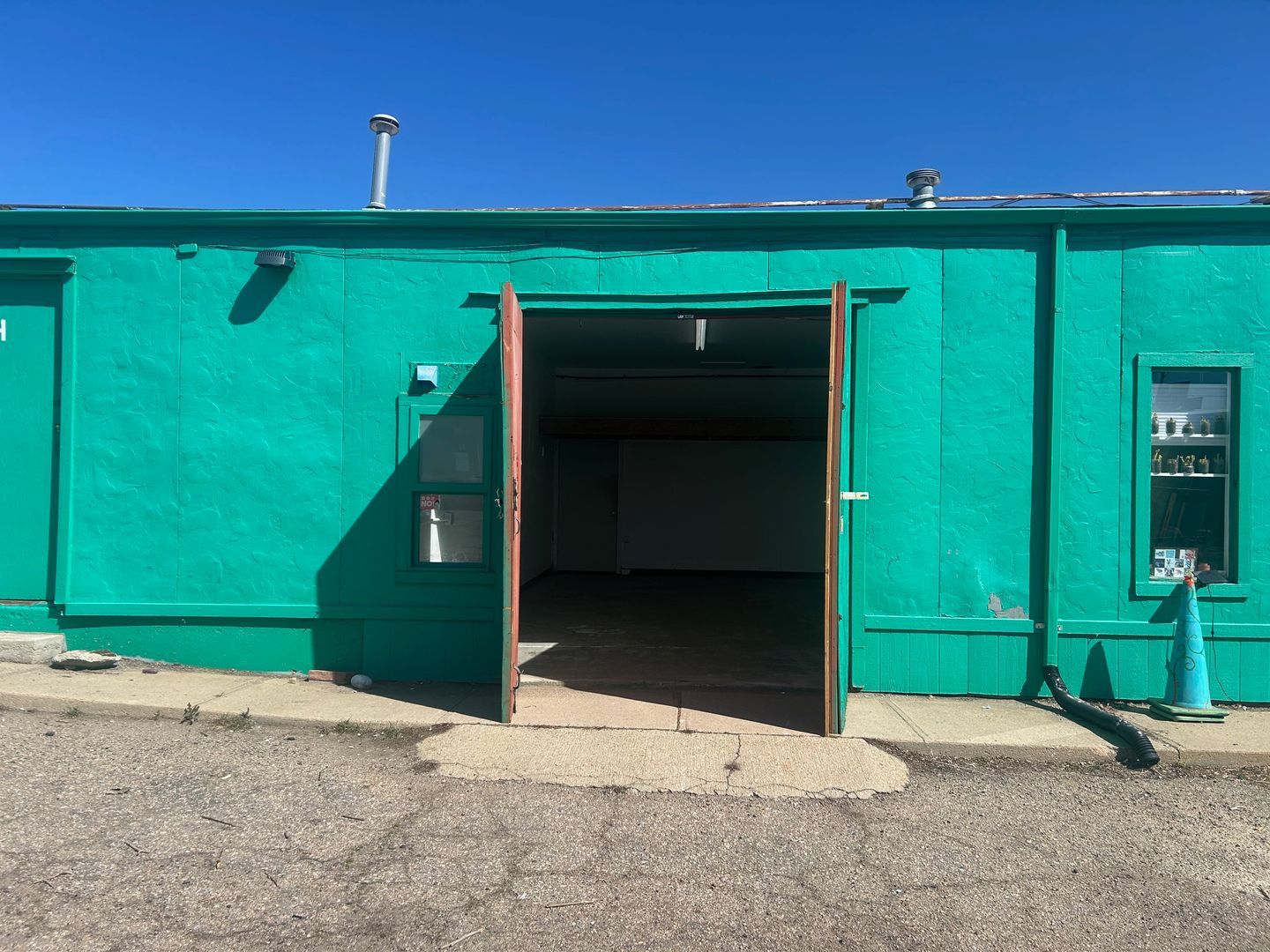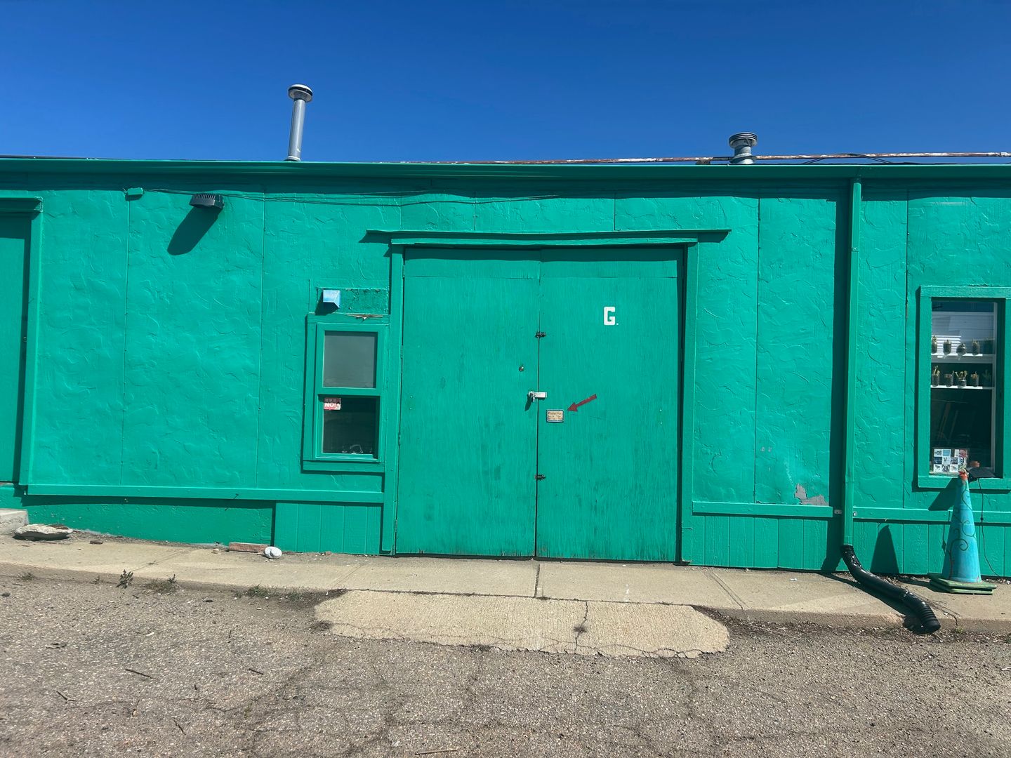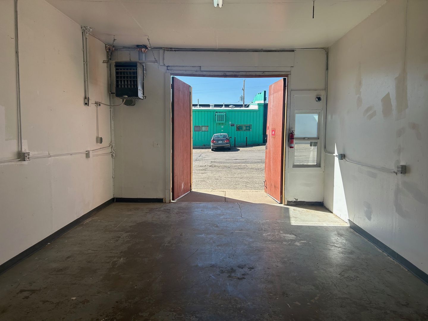 Unit G is a small workshop space located at our popular North Broadway property. The space features a large double door, concrete floors, a drop down industrial style heater, and built in shelving along with a small backyard. This space allows for 24/7 access and access to a common area restroom.